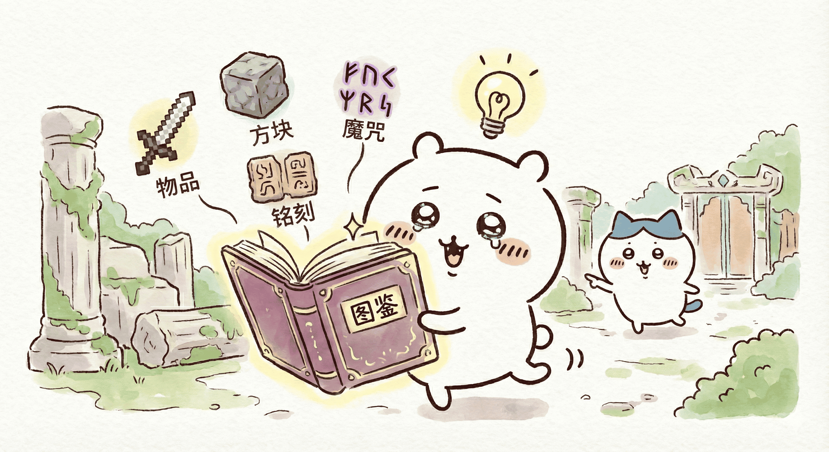 在游戏中,图鉴是一本特殊的书。手持然后右键即可打开面板。