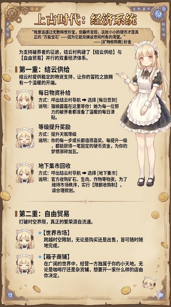 结云村构建了双重经济体系。破界者们可以通过结云供给和自由贸易两种方式获得硬币。