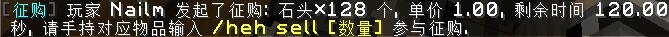 /heh req [物品名称] [单价] [数量]向全服玩家收购物品。 - 例如以 1 软妹币的单价收购 100 个羊毛则输入