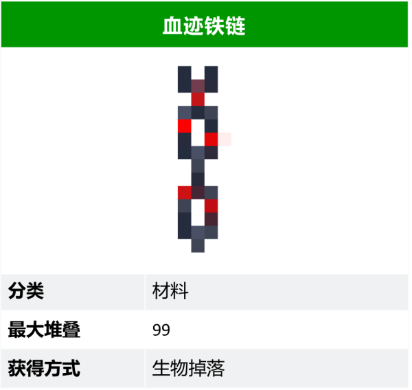 目录 血迹铁链 介绍 获得途径 用途 合成材料 材料 血迹铁链 介绍 破碎的骸骨外缠绕的铁链,其上血迹依然清晰可见。似乎能用于制作一些特殊道具。 获得途径 日灼骸骨掉落 用途 合成材料 裂冰挂坠、渗血铁锁、嵌岩御甲、炽土靴、流沙行胫、