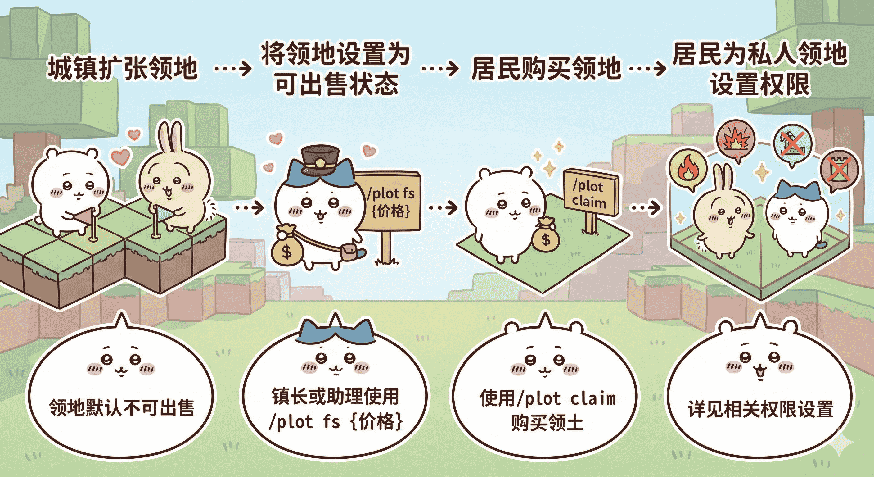 - 站在可出售的领地上使用 /plot nfs 可将其重新设置为不可出售
