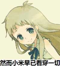 当时小天使将 xx看穿一切 用在 小米看穿一切 图片上,并当表情使用,使得内阁各大小米控翻起prpr(请脑补)的巨浪。后被菜萌重制成: