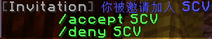 这时输入 /accept {城镇名} 表示接受邀请,/deny {城镇名} 则表示拒绝。